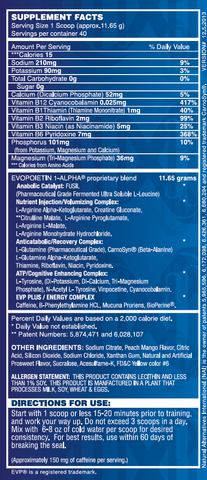 The "plus" in EVP Plus refers to the finely-tuned energy complex, designed to rapidly increase energy levels while improving focus and performance. Unlike other stimulant-based pre-workout products, EVP Plus won't over-stimulate and cause vasoconstriction - meaning you'll get all of the benefits of EVP for the perfect balance of ramped-up energy levels with the same sick, skin-splitting pumps you're used to!